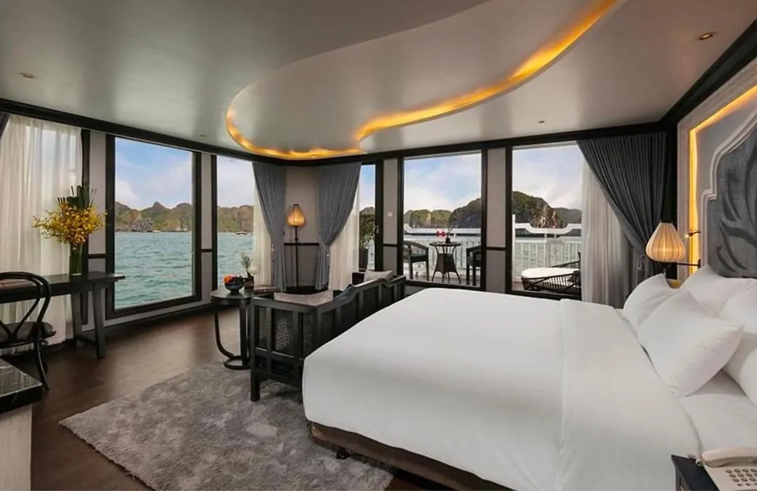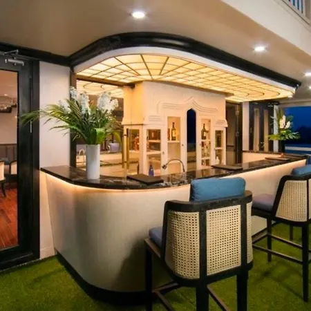 Offering a restaurant and a storage for belongings, the 5-star Lotus Boutique Cruise Hotel lies in the Tuan Chau district of Ha Long, 3.5 km from Tuan Chau Harbor and around a 10-minute drive from Bai Tu Long Bay. This Ha Long cruise features cars for rent, as well as Wi-Fi throughout the property.